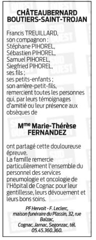 Cet espace « condoléances » est dédié à la mémoire de Madame Marie-Thérèse PIHOREL née FERNANDEZ.