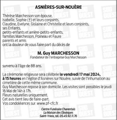 Cet espace « condoléances » est dédié à la mémoire de Monsieur Guy MARCHESSON.