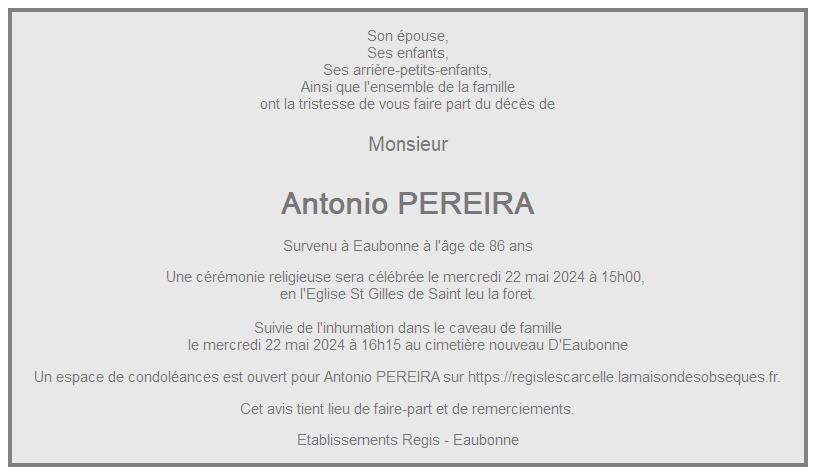 de Monsieur Antonio PEREIRA
