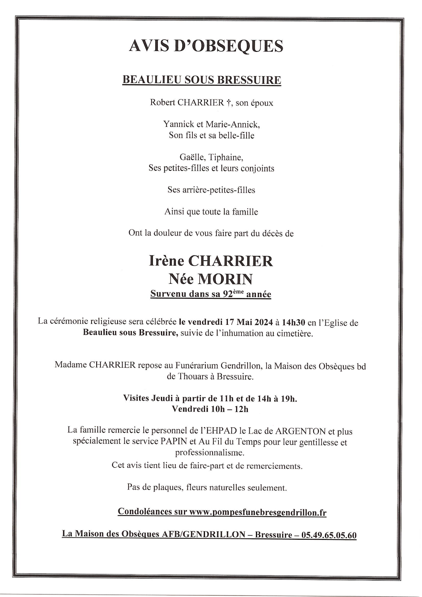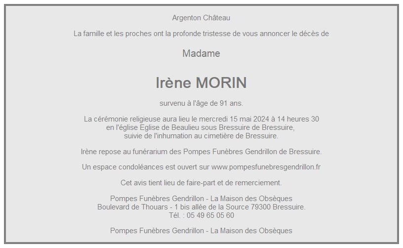de Madame Irène CHARRIER née MORIN