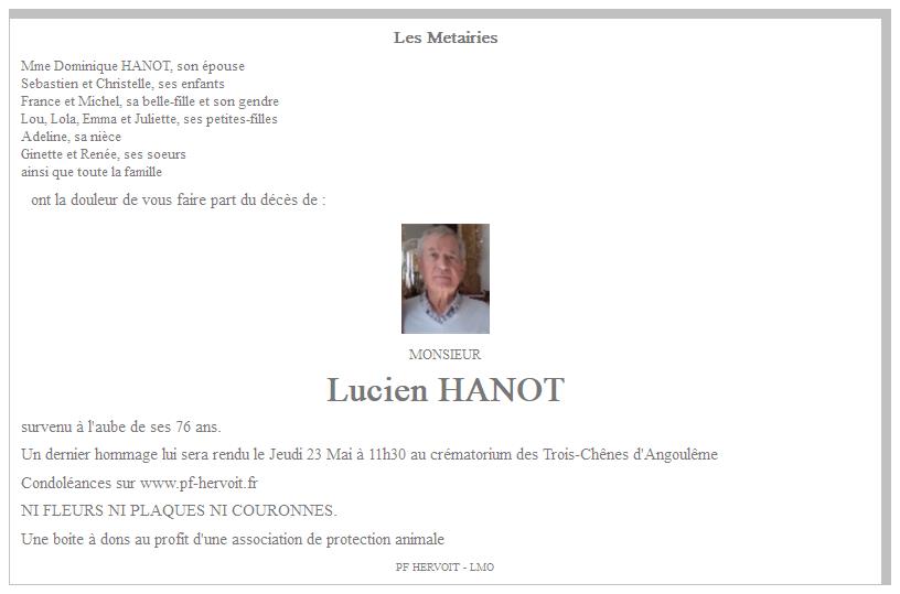 de Monsieur Lucien HANOT