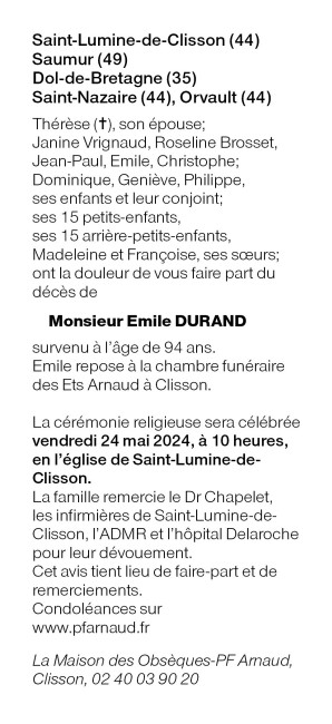Cet espace « condoléances » est dédié à la mémoire de Monsieur Émile DURAND.