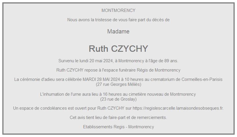 Cet espace « condoléances » est dédié à la mémoire de Madame Ruth MONIÉ née CZYCHY.