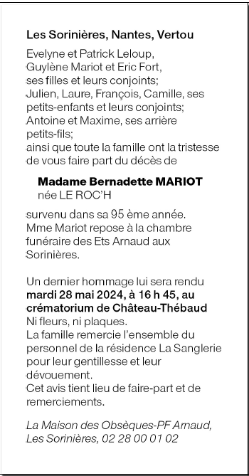 de Madame Bernadette MARIOT née LE ROC'H
