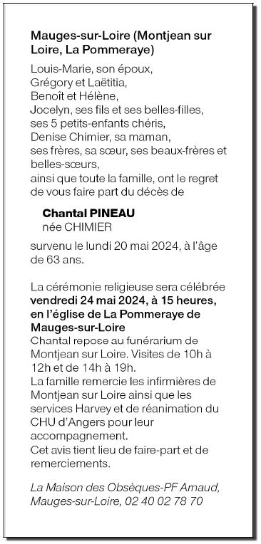 de Madame Chantal PINEAU née CHIMIER