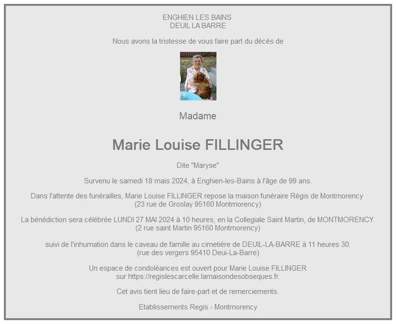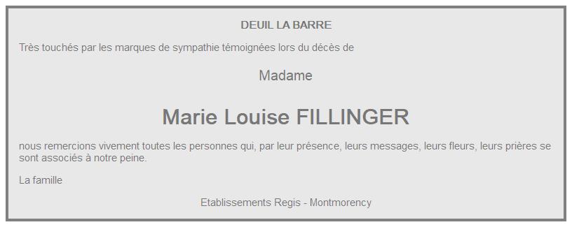 de Madame Marie Louise FILLINGER