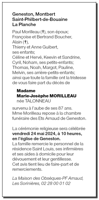 de Madame Marie-Josèphe MORILLEAU née TALONNEAU