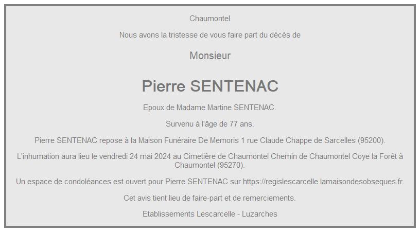 Cet espace « condoléances » est dédié à la mémoire de Monsieur Pierre SENTENAC.