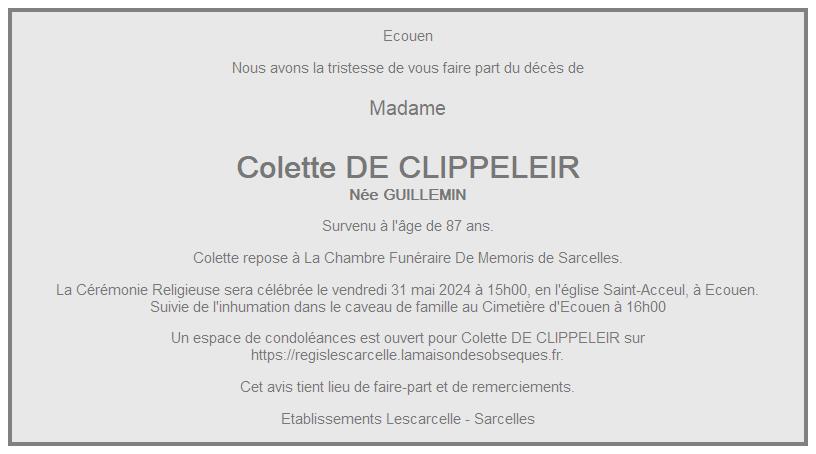 de Madame Colette DE CLIPPELEIR née GUILLEMIN