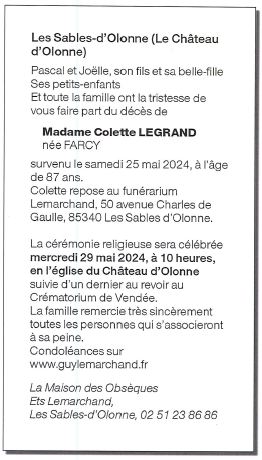 de Madame Colette LEGRAND née FARCY