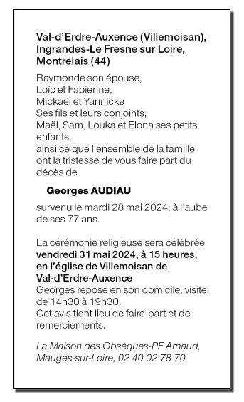 Cet espace « condoléances » est dédié à la mémoire de Monsieur Georges AUDIAU.