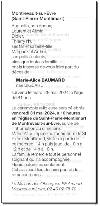 de Madame Marie-Alice BAUMARD née BIGEARD