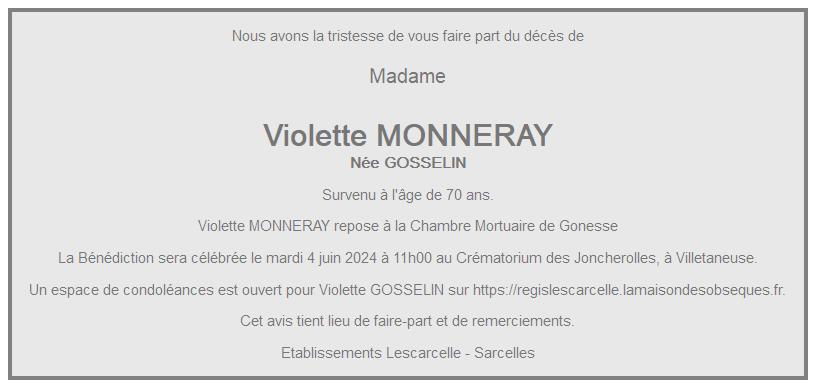 de Madame Violette MONNERAY née GOSSELIN
