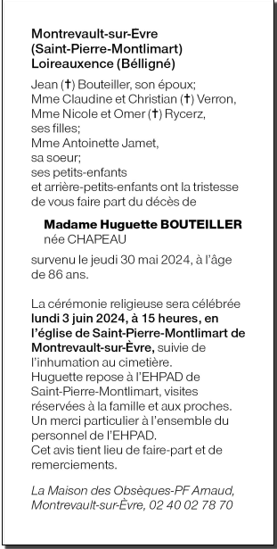 de Madame Huguette CHAPEAU