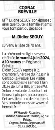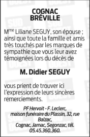 Cet espace « condoléances » est dédié à la mémoire de Monsieur Didier SEGUY.