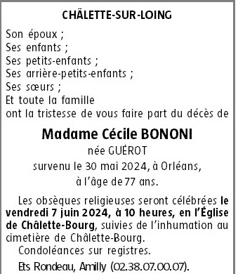 de Madame Cécile BONONI née GUEROT