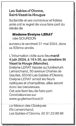 de Madame Evelyne LERAT née GOURDON