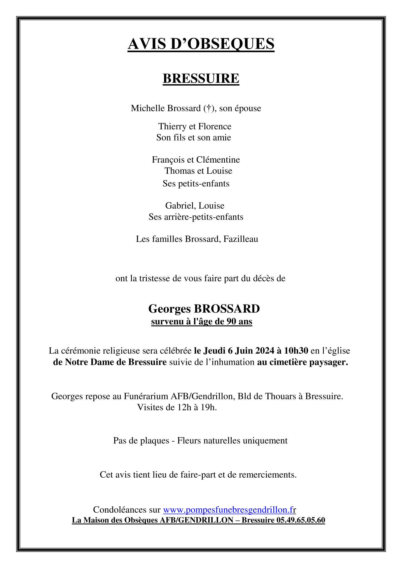 Cet espace « condoléances » est dédié à la mémoire de Monsieur Georges BROSSARD.