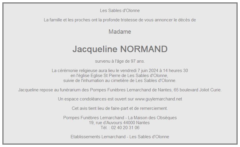 Cet espace « condoléances » est dédié à la mémoire de Madame Jacqueline COOLEN née NORMAND.