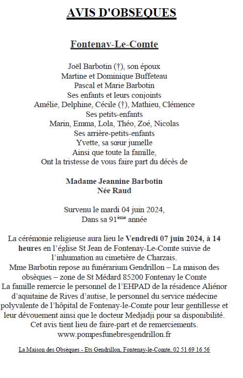 de Madame Jeannine BARBOTIN née RAUD