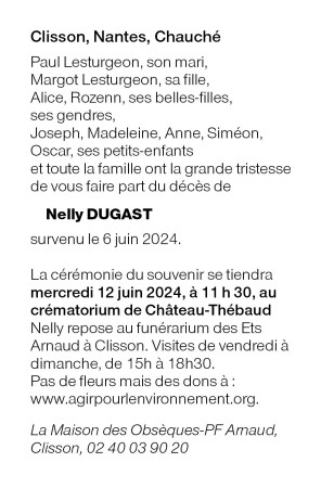 Cet espace « condoléances » est dédié à la mémoire de Madame Nelly DUGAST.