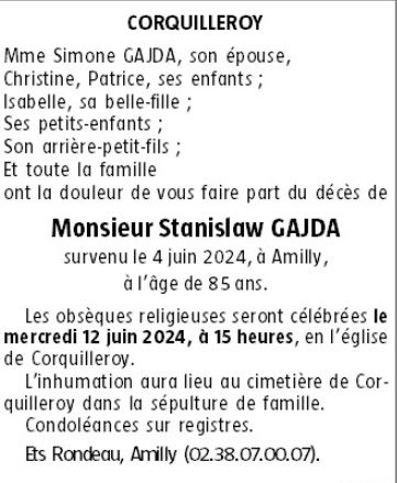 Cet espace « condoléances » est dédié à la mémoire de Monsieur Stanislaw GAJDA.