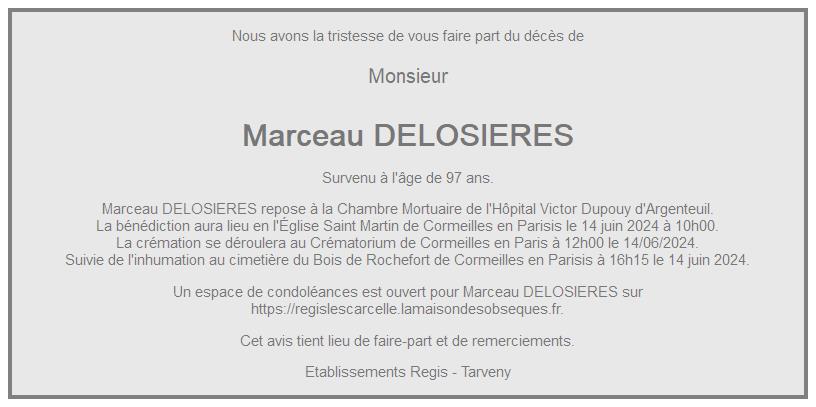 Cet espace « condoléances » est dédié à la mémoire de Monsieur Marceau DELOSIERES.