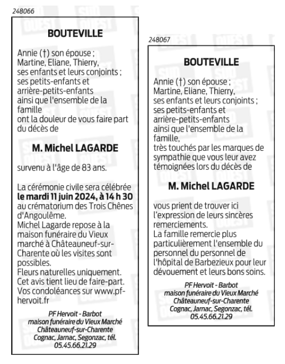 Cet espace « condoléances » est dédié à la mémoire de Monsieur Michel LAGARDE.