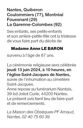 Cet espace « condoléances » est dédié à la mémoire de Madame Anne LE BARON.