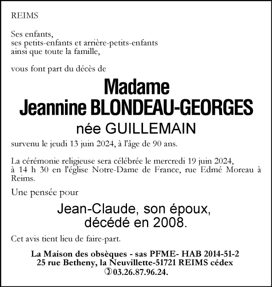 de Madame Jeannine BLONDEAU-GEORGES née GUILLEMAIN