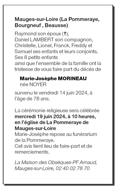 de Madame Marie-Josèphe MORINEAU née NOYER