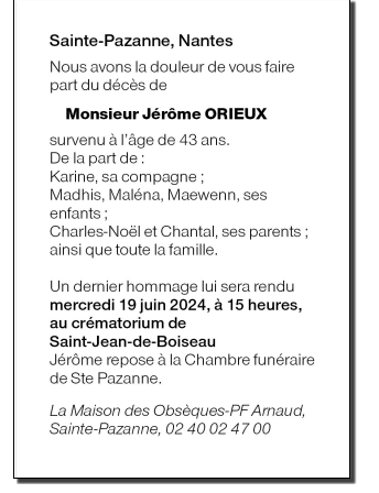Cet espace « condoléances » est dédié à la mémoire de Monsieur Jérôme ORIEUX.