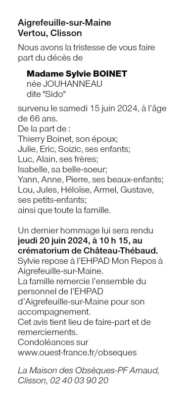 de Madame Sylvie BOINET née JOUHANNEAU