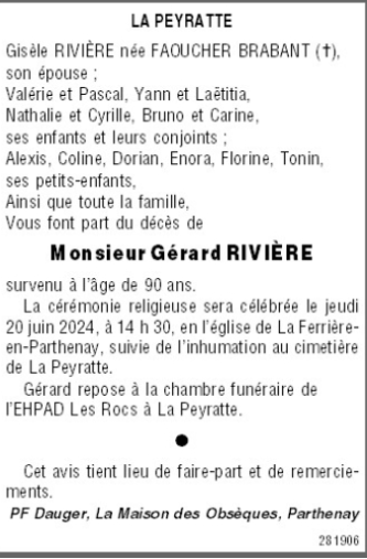 Décédé à Faye-l'Abbesse (79350) le dimanche 16 juin 2024