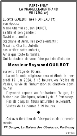 de Monsieur Raymond GUILBOT