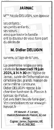 Cet espace « condoléances » est dédié à la mémoire de Monsieur Didier DELUGIN.