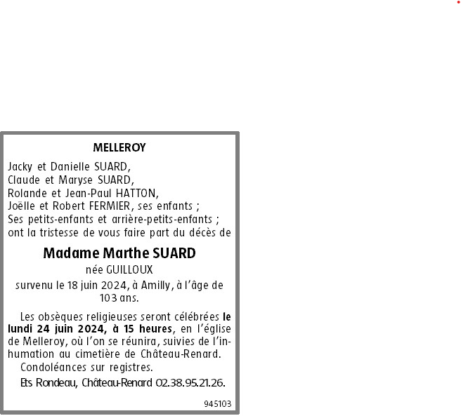 de Madame Marthe SUARD née GUILLOUX