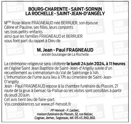 de Monsieur Jean-Paul FRAGNEAUD