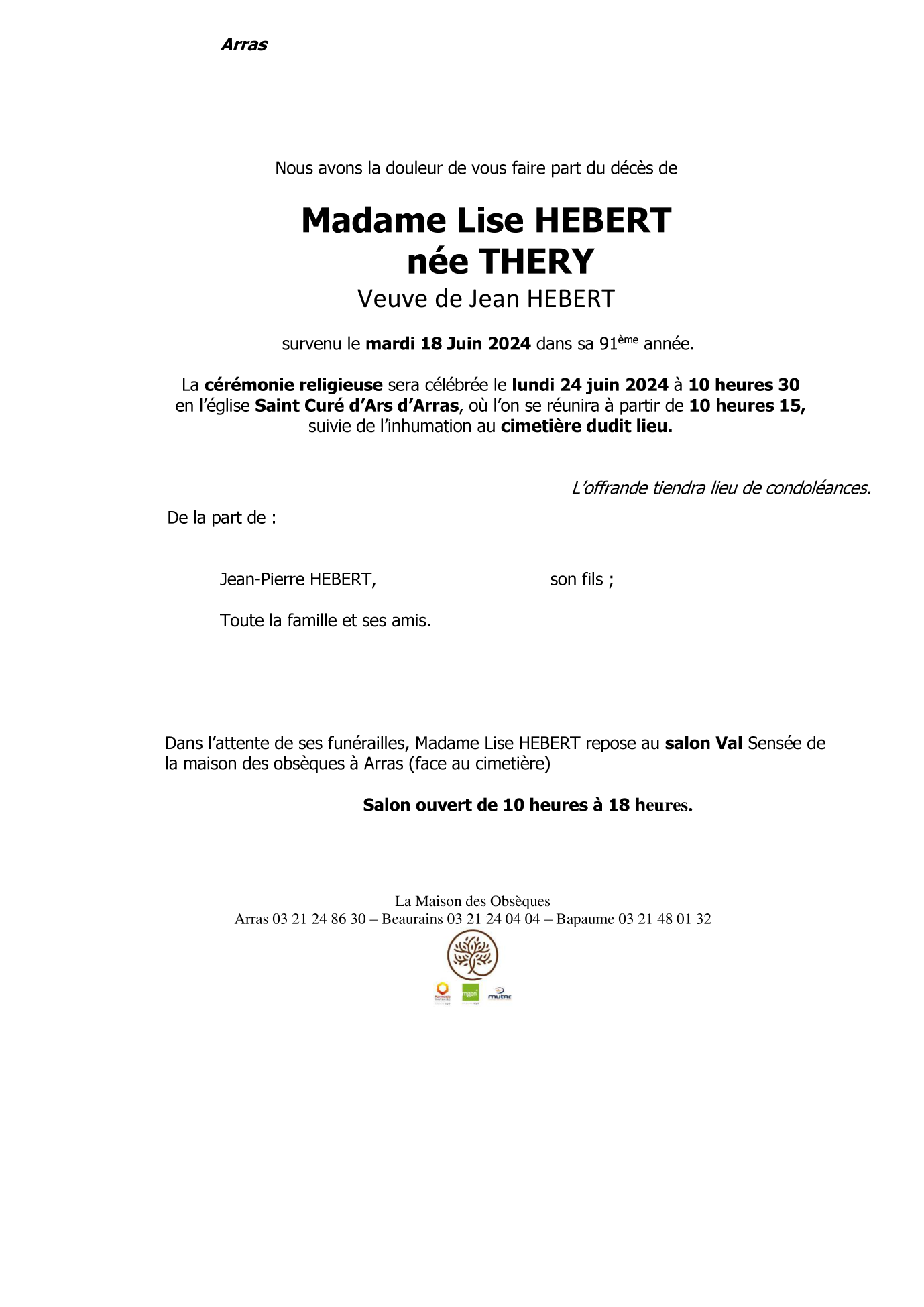 Cet espace « condoléances » est dédié à la mémoire de Madame Lise THERY.
