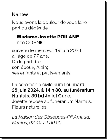 de Madame Josette POILANE née CORNIC