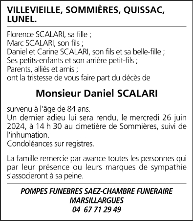 Cet espace « condoléances » est dédié à la mémoire de Monsieur Daniel SCALARI.
