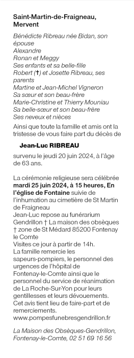 Cet espace « condoléances » est dédié à la mémoire de Monsieur Jean-Luc RIBREAU.