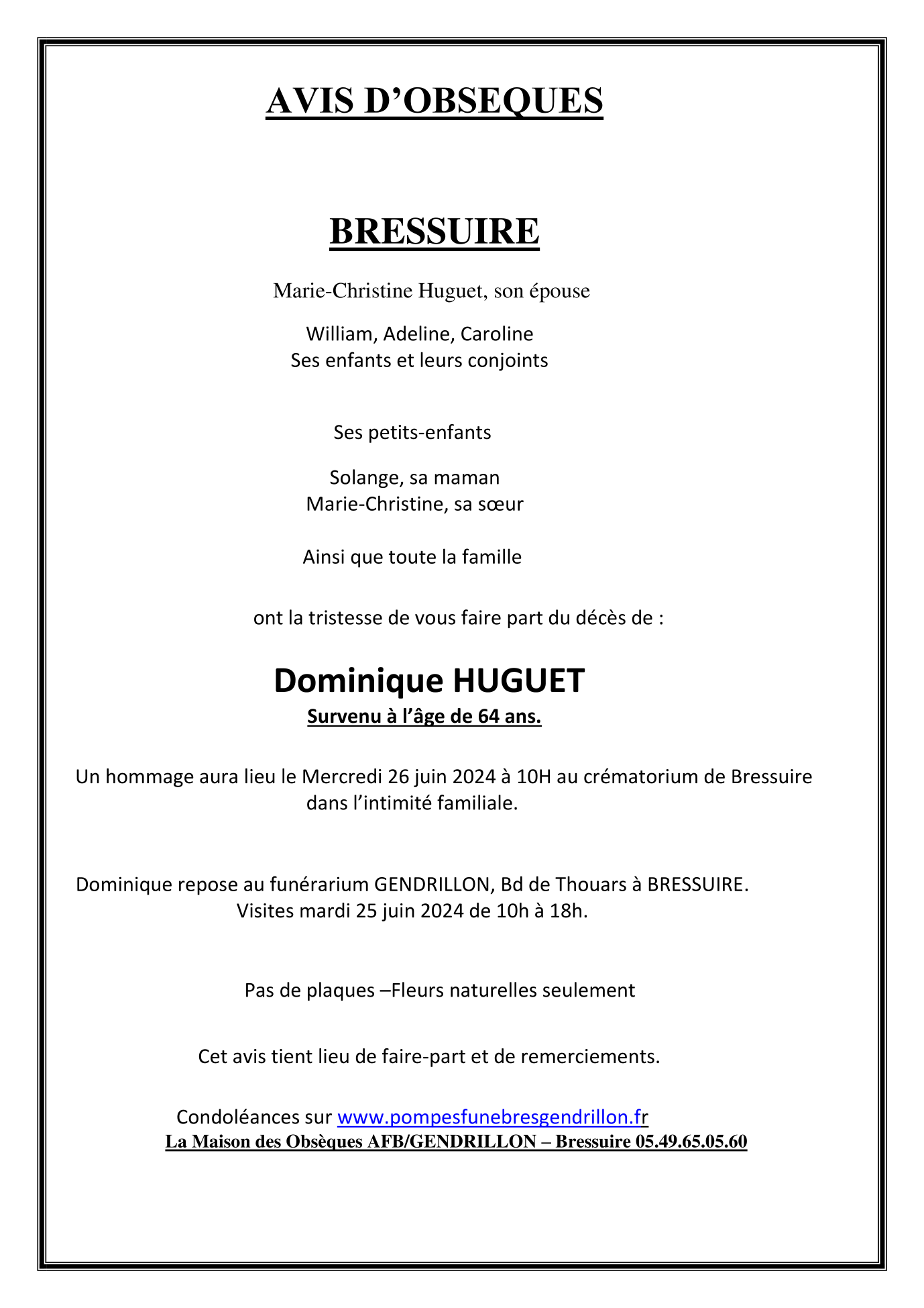 Cet espace « condoléances » est dédié à la mémoire de Monsieur Dominique HUGUET.