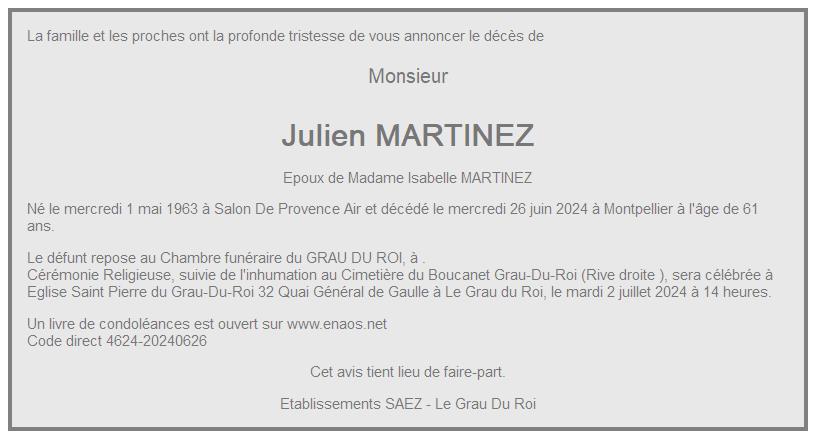 Cet espace « condoléances » est dédié à la mémoire de Monsieur Julien MARTINEZ.