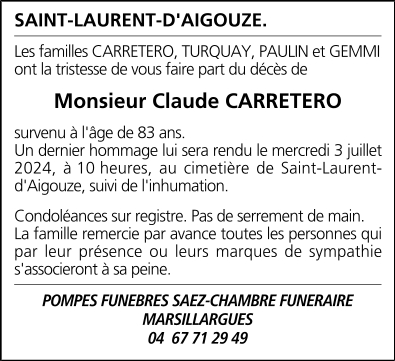 Cet espace « condoléances » est dédié à la mémoire de Monsieur Claude CARRETERO.