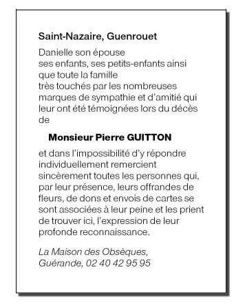 Cet espace « condoléances » est dédié à la mémoire de Monsieur Pierre GUITTON.
