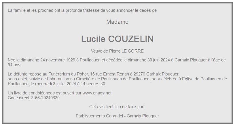 de Madame Lucile LE CORRE née COUZELIN