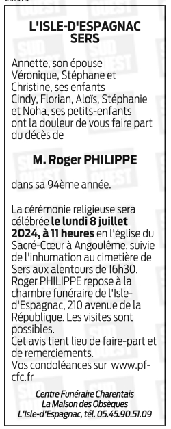 Cet espace « condoléances » est dédié à la mémoire de Monsieur Roger PHILIPPE.