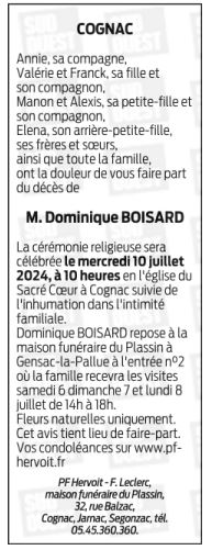Cet espace « condoléances » est dédié à la mémoire de Monsieur Dominique BOISARD.