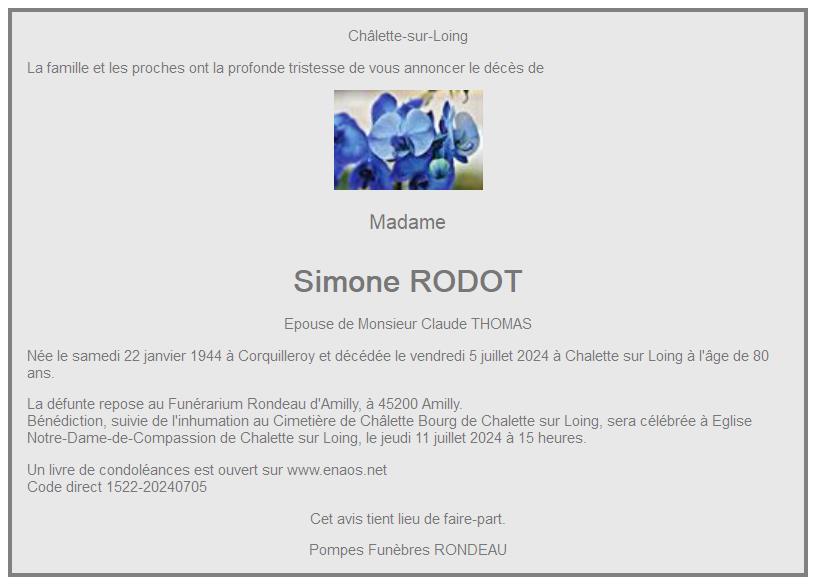 de Madame Simone THOMAS née RODOT